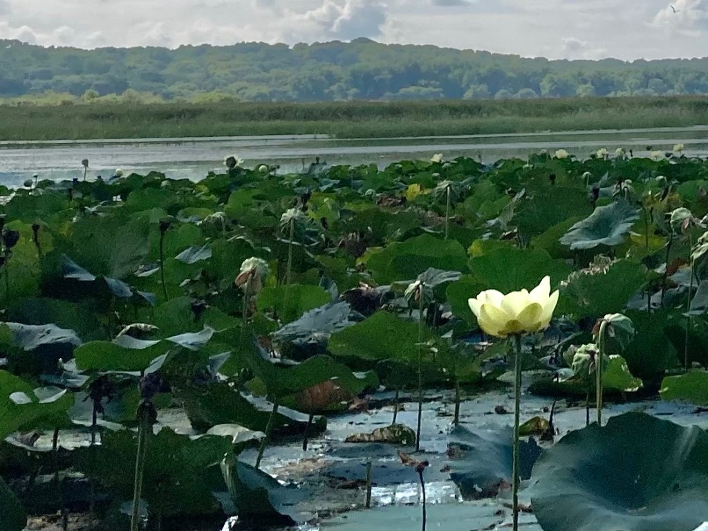 The long beam bridge was under repair with scaffolding, ladders, machinery and tools everywhere. It was a Sunday so the workers were all at home with their own families. I’ll never forget the I-35 Bridge collapse in 2007 that killed 13 people and injured 145. It didn’t seem a disaster like that was possible. But I guess that’s the nature of disasters. If we could predict them, they wouldn’t happen. With that memory in mind, I appreciated the workers, both for their labors and their absence. I was grateful for the relative silence as I gazed at the wonder of lily pads and clouds.