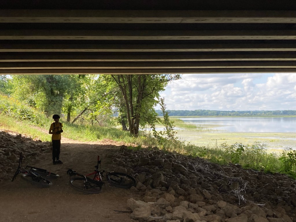 My son and I admired some fresh graffiti and we continued along on our epic journey together. It’s a completely different perspective under the bridge than from above it. I don’t think anyone racing to or from Eagan at 70 mph is contemplating the works of Claude Monet.