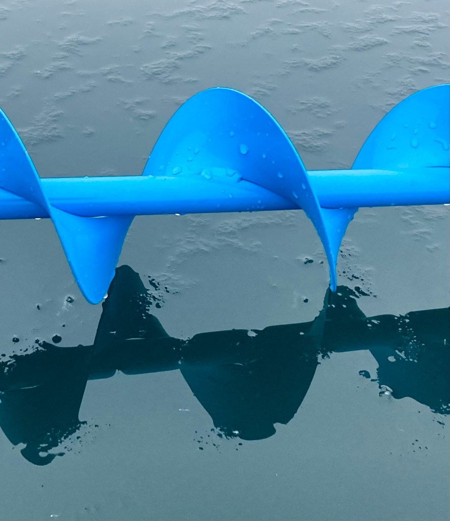 With a sense of pessimism, I tried one last spot where I had caught bluegills the year before and drilled myself two fresh holes with my Finnish auger. Most ice fisherman use lithium-battery powered augers these days. Sometimes I feel judged because I use such primitive equipment. But with sharp blades, it only takes me a couple minutes to get through the ice, and the effort required warms my body.